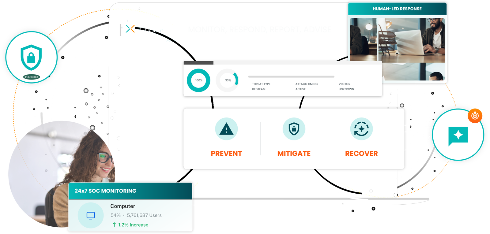 AI-driven detection and 24×7 SOC monitoring to prevent, mitigate, and recover from modern threats—fast